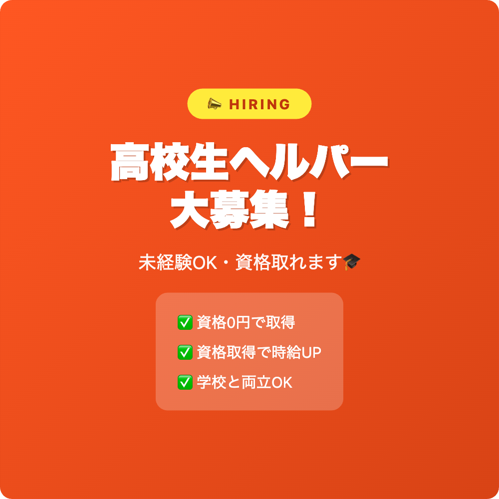 高校生ヘルパー 募集要項|時給・勤務地・応募資格